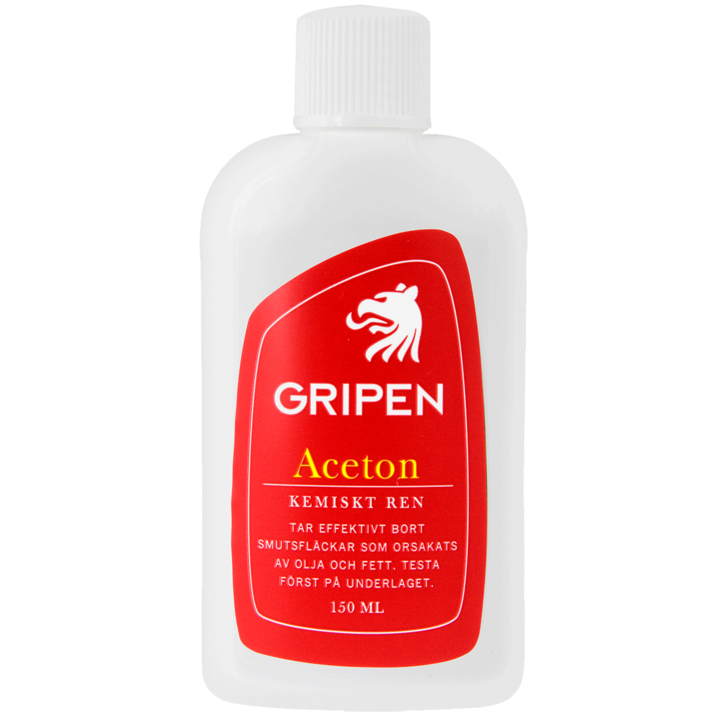 • Gripen Acenton Kemiskt Ren är effektivt för smutsfläckar som orsakats av olja och fett.