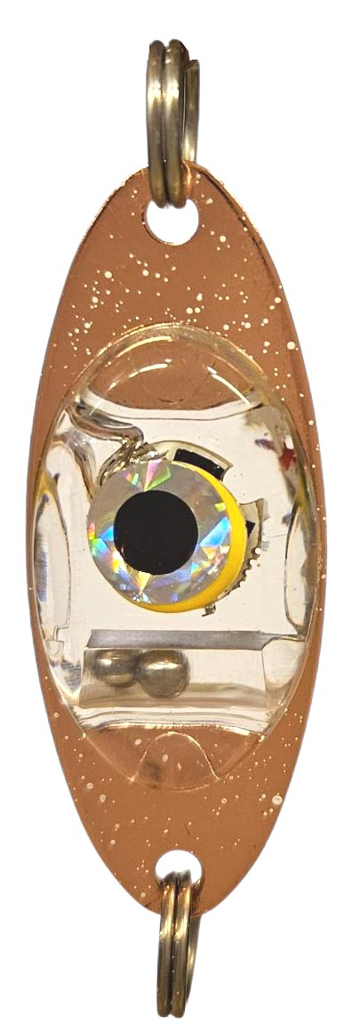 Blinkögat 10g, 50mm med rasselkulor Ögat blinkar, med bubbla dioder, på ett irriterande sätt för att locka till sig fisken. Det är ett utmärkt rödingblänke. Använd gärna med lång tafs. Det startar vid kontakt med vatten och har inbyggt batteri. Prova att använda Blinkögat ovanför ett vanligt rödinblänke.
