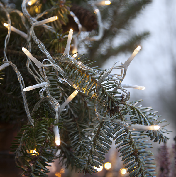 Serie Mirco LED ljusslinga med transparent kabel och 3mm LED punkt. Ljusslingan är 9 meter lång och har 90 LED-ljuskällor i varmvitt sken. Vacker ljusslinga att dekorera med utomhus.