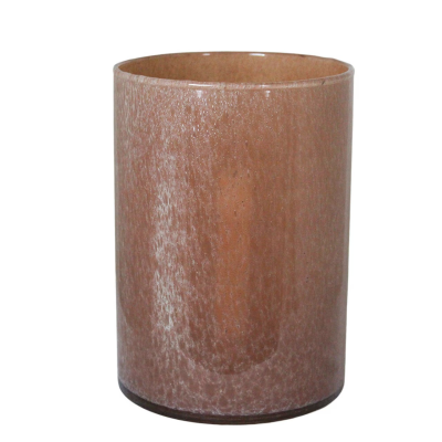 Bred cylinderformad ljuslykta i glas för kronljus tillverkad av 50-60% återvunnet glas. Med en vacker, dovt ljusbrun färg och naturliga skiftningar skapar denna ljuslykta en mysig stämning i alla rum. Kombineras med fördel med flera olika ljustakar och lyktor i samma serie. Tål ej diskmaskin.
