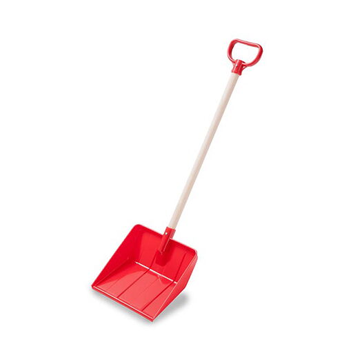 Barnsnöskyffel i plast med träskaft. Längd 71 cm. Bladets bredd 20cm.